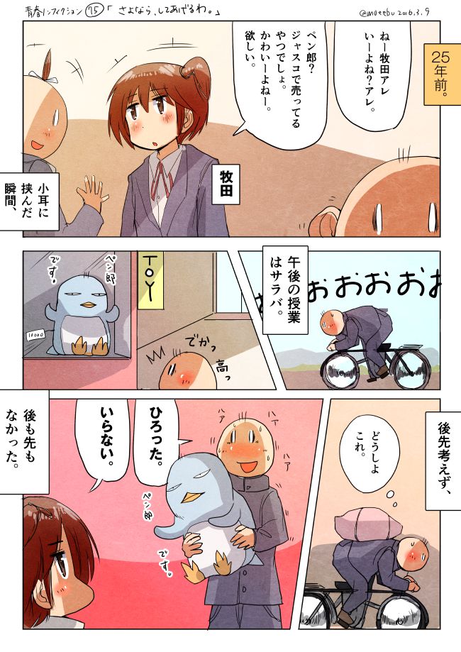 25年前の高校時代の回想。オータニがマキタに、ジャスコで売っているペン郎というキャラクターグッズが欲しいと話す。それをたまたま耳にしたハセガワは、午後の授業をサボって自転車で飛び出し、玩具店でペン郎のぬいぐるみを購入。息を切らしながらマキタのもとへ駆けつけ「どうしよ」と差し出す。マキタは「いらない」とそっけなく断るが、ハセガワはペン郎を抱きしめて笑っている。ナレーションには「後先考えず、後も先もなかった」とある。